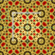 Padrão geométrico decorativo sem costura, com formas geométricas em amarelo, laranja, vermelho e preto.