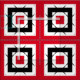 Padrão geométrico sem costura abstrato com formas geométricas em vermelho, preto e branco. Textura com efeito de ilusão óptica.