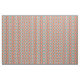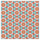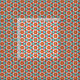 Este é um padrão caleidoscópio com o uso de cores antigas. Lembrando os dias de imagem 3D, este padrão apresenta um azul ciano e uma sobreposição vermelha brilhante entre si. Há também tons de amarelo-mostarda e o fundo é uma laranja cremosa. Formas em várias cores estão se sobrepondo criando flores, setas, linhas e anéis. Esta safra misturada com padrões modernos é uma maneira divertida e brilhante de adicionar algum flare a uma sala ou roupa plana.