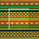 Tecido com padrão geométrico em forma de kente africano escuro, de cor amarela clara, vermelha, amarela, verde e negra