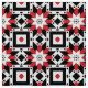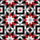 Design abstrato moderno com um padrão sem soldadura feito de formas geométricas em vermelho, preto e branco.