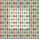 Desfrute de um retrô divertido que lembra o circo com este design harlequin em tons de chalé, menta, vermelho, rosa e bege.