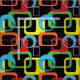 Este legal padrão geométrico gráfico, com retângulos e círculos arredondados com recortes offset, que lembram o design moderno do meio século, foi atualizado com uma paleta viva de várias cores. Personalize-o facilmente com a sua cor de fundo favorita.