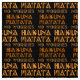 Um padrão uniforme de arte de texto em uma fonte tradicional de estilo africano. O texto "Hakuna Matata" significa "No Worries" em Swahili. Você pode usar este tecido têxtil incrível e positivo para qualquer projeto de artesanato ou roupa, e muito mais. Seja criativo, faça algo elegante e seja feliz!