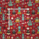 Tecido Padrão Ilustrado de Robôs Retro Diversos (Vermelho