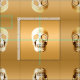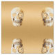 Ouro metálico gótico de cabeça de crânio, cinzento, na moda, material elegante de costura de artesanato. tecido moderno de Halloween assustador. Legal, moderno, contemporâneo, legal, assustador, design de padrão único. Imagem copyright Marg Seregelyi Photography.