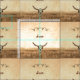 tecido de costurar antiquado do modelo de corte do castanho-do-rochedo. O antigo cenário do estilo da fazenda oeste do país tem um design original único. O vaqueiro selvagem do oeste inspirou material de arte para todas as suas necessidades de costura. Quatro crânios em um padrão com tipografia personalizada. Arte de animais, legal e fazenda, copyright Imagem Marg Seregelyi Photography.