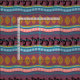 Mão Desenhada Kokopelli e Padrão Nativo Americano Sudoeste em ameixa, ouro e turquesa.