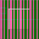 Este design apresenta um padrão listrado com cores como verde e rosa quente.