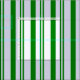 Este design apresenta um padrão listrado verde e lavanda.