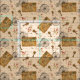 padrão com Keys, gravações, bicicletas antigas, cartas postais e flores