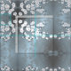 Um padrão elegante de cereja geométrica azul-cinza floresce.