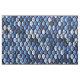 Tecido com padrão de escamas de peixe de aparência metálica azul cobalto.