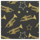 tecido legal com trompetes de latão e estrelas. Perfeito para jogadores de trompete, e amantes de música.