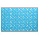 Tecido azul colorido impresso com margaridas brancas, conectado por espirais brancas pálidas. Como uma corrente de Daisy.