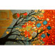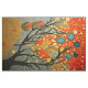 Ilustração estilo William Morris de árvore e flores com toque na abstrato. Uma textura colchada no painel fornece profundidade adicional para este padrão de colcha trapaceira.