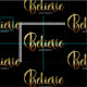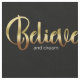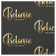 Faça pjs, decor de quarto, bolsas e muito mais com este tecido, que apresenta a mensagem motivacional "Acredite e Sonhe" em letras serif de ouro e sans brancos estilizados, repetindo em um fundo preto. Design © W.H. Sim. Mais informações em zazzle.com/expressionsoccasions
