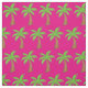 O tecido apresenta uma ilustração original de linhas de palmeiras tropicais verdes, impressas em fundo rosa.