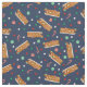 É o perfeito tecido de Natal para fazer ajustados para os donos de veículos. Este material modelado divertido tem ilustrações de RVs de pão de gengibre. Juntamente com os campers festivos da classe C, há ilustrações de uma variedade de doces de Natal contra um fundo azul marinho.