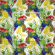 Fundo tropical dos pássaros | com papagaios e fruta no fundo branco. © e ® Bigstock® - todos os direitos reservados.