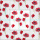 tecido floral bonito decorado com flores vermelhas de papoila desenhadas em caneta e tinta e pintadas com aquarela.