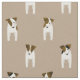 Este tecido da Parson Jack Russell apresenta um padrão linear e fascinado de oito minúsculos desenhos animados "Jacks" com várias marcas faciais e corporais marrons e pretas - olhando atentamente, você pode ver que cada um dos cães tem uma inclinação da cabeça branca - a cor de fundo é personalizável, atualmente esticada - Jack Russell Terriers © katz_d_zynes 2019
