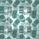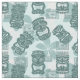 O divertimento Tiki dirige contra um fundo de flores tropicais e de símbolos polinésios. Um grande tecido para seu projeto sewing retro!