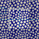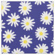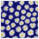 Um padrão repetitivo composto por muitas margaridas pintadas à mão sobre um fundo azul marinho profundo.