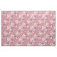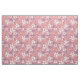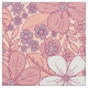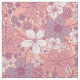 Este tecido tem flores e folhas em tons pastéis de rosa e roxo sobre fundo rosa.