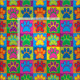 Os impressões animais da pata do pop art em um tabuleiro de damas colorido projetam.