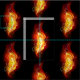 Pena de pavão brilhante feita de fogo e chamas sobre fundo negro.