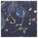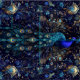Os tons dominantes são azuis profundos, púrpura, e chaleiras, criando uma atmosfera luxuosa e mística. Acentos de ouro, âmbar e cobre adicionam calor e contraste, melhorando a profundidade do design. A interação das sombras escuras com as claras lhe dá uma qualidade luminosa, quase iridescente — lembrando como penas reais de pavão capturam a luz. 2. Composição e Padrões As formas giratórias e sobrepostas semelhantes às penas criam um movimento fluido e orgânico. Cada pena apresenta linhagem delicada, seguindo as curvas naturais das plumas de pavão.
