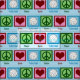 Tecido de vôlei azul, bonito, com sinal de paz, coração e bola para o seu esporte favorito. Tecido de Voleibol Peace Love para um time ou treinador.
