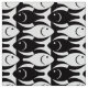 Tecido Peixes modernos do meio século, preto e branco