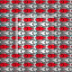 Tecido Peixes modernos do meio século, vermelho e