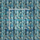 Pavões reais azuis num fundo de seda esmeralda com flores brancas e penas de pavão verde azul