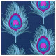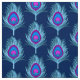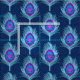 Tecido de uma pena de pavão - penas azuis claras, com um olho em tons de violeta, ametista roxo e turquesa, sobre um marinho escuro / fundo azul de índigo