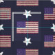 Que a bandeira acene com este padrão de tecido patriótico. O fundo é azul com estrelas brancas e bandeiras coloridas dos Estados Unidos com as palavras do prometido de fidelidade escrito nas listras vermelhas.