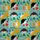 O tecido pequeno dos cheerleaderes, um design bonito, do divertimento dos aplausos em um fundo azul do aqua que caracteriza cheerleaderes com uniformes e os poms do pom de alaranjado, de verde, de vermelho, e de azul, megafone, fitas, e texto que lê vão equipe e Rah!