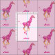 Os girafas cor-de-rosa galopam através deste tecido personalizable que é perfeito para a sala de um bebé. Adicione o nome da sua criança em sua escolha da pia batismal e colora-o para essa de uma sala amável do bebê. Você pode mudar o tamanho dos girafas demasiado. Escolha umas letras grandes para uma edredão e um impressão menor para acessórios.