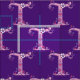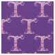 Bonito desenho T branco convertido em letra gráfica em tons roxos e cor-de-rosa sobre fundo roxo escuro. A cor de fundo pode ser alterada para sua própria escolha de cor, se necessário. Personalizado com seu próprio tecido inicial, este lê T, ideal para projetos personalizados de costura. Outras cartas disponíveis. © Desenho original e design por Sarah Trett. www.sarahtrett.com para www.mylittleeden.com