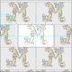 Bonito mão branca M desenhada em seguida convertida em arte gráfica em cinzas com tons de amarelo, roxo, rosa sobre fundo branco. A cor de fundo pode ser alterada para sua própria escolha de cor, se necessário. Personalizado com seu próprio tecido inicial, este lê M, ideal para projetos personalizados de costura. Outras cartas disponíveis. © Desenho original e design por Sarah Trett. www.sarahtrett.com para www.mylittleeden.com