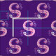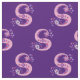 Bonito desenho S primitivo convertido em letras gráficas de arte em tons roxos e cor-de-rosa sobre fundo roxo escuro. A cor de fundo pode ser alterada para sua própria escolha de cor, se necessário. Personalizado com o seu próprio tecido inicial, este lê S, ideal para projetos personalizados de costura. Outras cartas disponíveis. © Desenho original e design por Sarah Trett. www.sarahtrett.com para www.mylittleeden.com