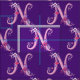 Bonito desenho N primitivo convertido em letra gráfica em tons roxos e cor-de-rosa sobre fundo roxo escuro. A cor de fundo pode ser alterada para sua própria escolha de cor, se necessário. Personalizado com seu próprio tecido inicial, este lê N, ideal para projetos personalizados de costura. Outras cartas disponíveis. © Desenho original e design por Sarah Trett. www.sarahtrett.com para www.mylittleeden.com