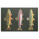 Design apresenta as belas cores e padrões da trama de Brook, salvelinus fontinalis, da trama arco-íris, oncorhynchus mykiss, e da trama de Brown, salmo trutta. A arte é de pinturas originais de aquarela pelo Sr. Trout Whiskers. Excelente para fãs de pesca de moscas e ictiologia. Para a costura de artes de pesca, para decoração de salas, cabinas, borras, etc., para artesanatos de pesca de qualquer descrição.
