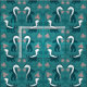 Tecido Pincéis e Flores Verde-Teal Escuro