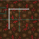 Tecido castanho-escuro russo com padrão florestal de pinheiro-pinheiro e bagas ocas-vermelhas