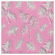 Tecido tropical com um bonito padrão de folhas brancas de palma em um fundo rosado e giro.