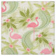 A minha ilustração vetorial original de uma variedade de plantas tropicais estilizadas, flores de hibisco, flamingos e formas paisley, em tons de aqua cor-de-rosa, verde e claro, em branco antigo, com um sutil grão de tecido simulado, para dar ao design a sensação de um pano de latido antigo.