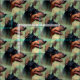 Leve efeito dos desenhos animados nesta imagem de um cão do Pinscher do Doberman com orelhas colhidas contra um esquema de cores verde woodsy do fundo. Aperfeiçoe para o amante do cão de Dobie em você!